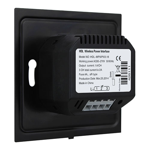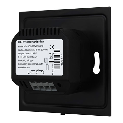 Wireless interface panel power supply base, to be used with wireless panel, mainly to provide wireless panel equipment such as power supply, also has the function of that move light/switch, including 1 MOSFET treads the dimming and 2 road on the leading edge of the silicon controlled dimmer.