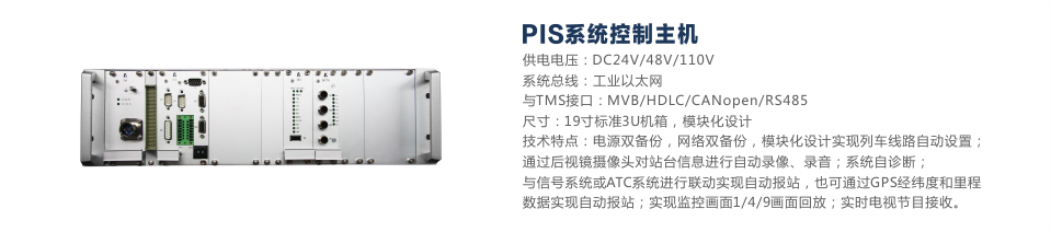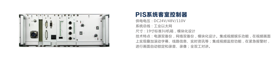 功能:处理本节车厢信息,管理本节车厢PIS系统,总体重量约小于10kg,整个机柜功耗小于150W
